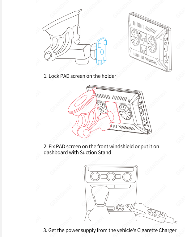 2: تثبيت الحامل على الزجاج الأمامي أو وضعه على لوحة القيادة مع حامل شفط